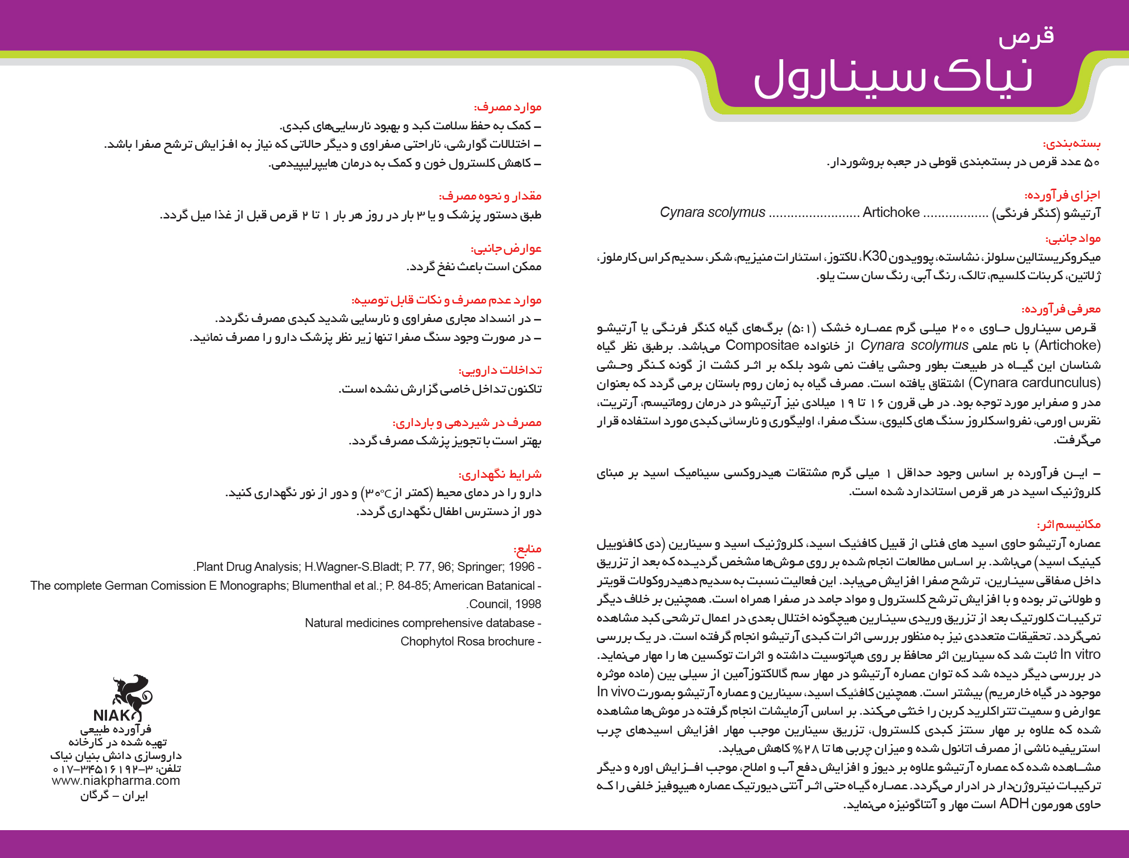 - نام فرآورده: سینارول (Cynarol)