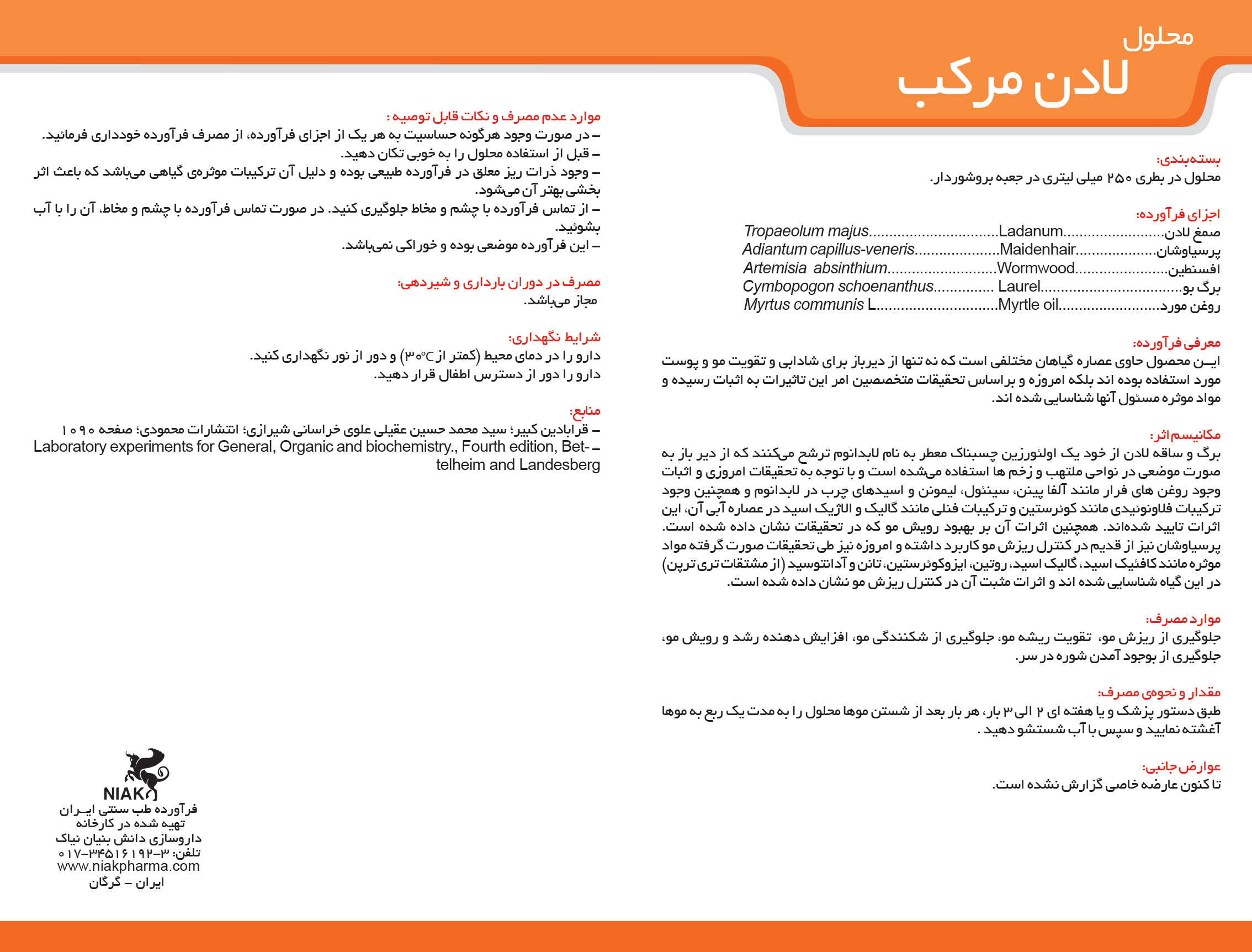 - نام فرآورده: محلول لادن مرکب (Ladan Compound Solution)