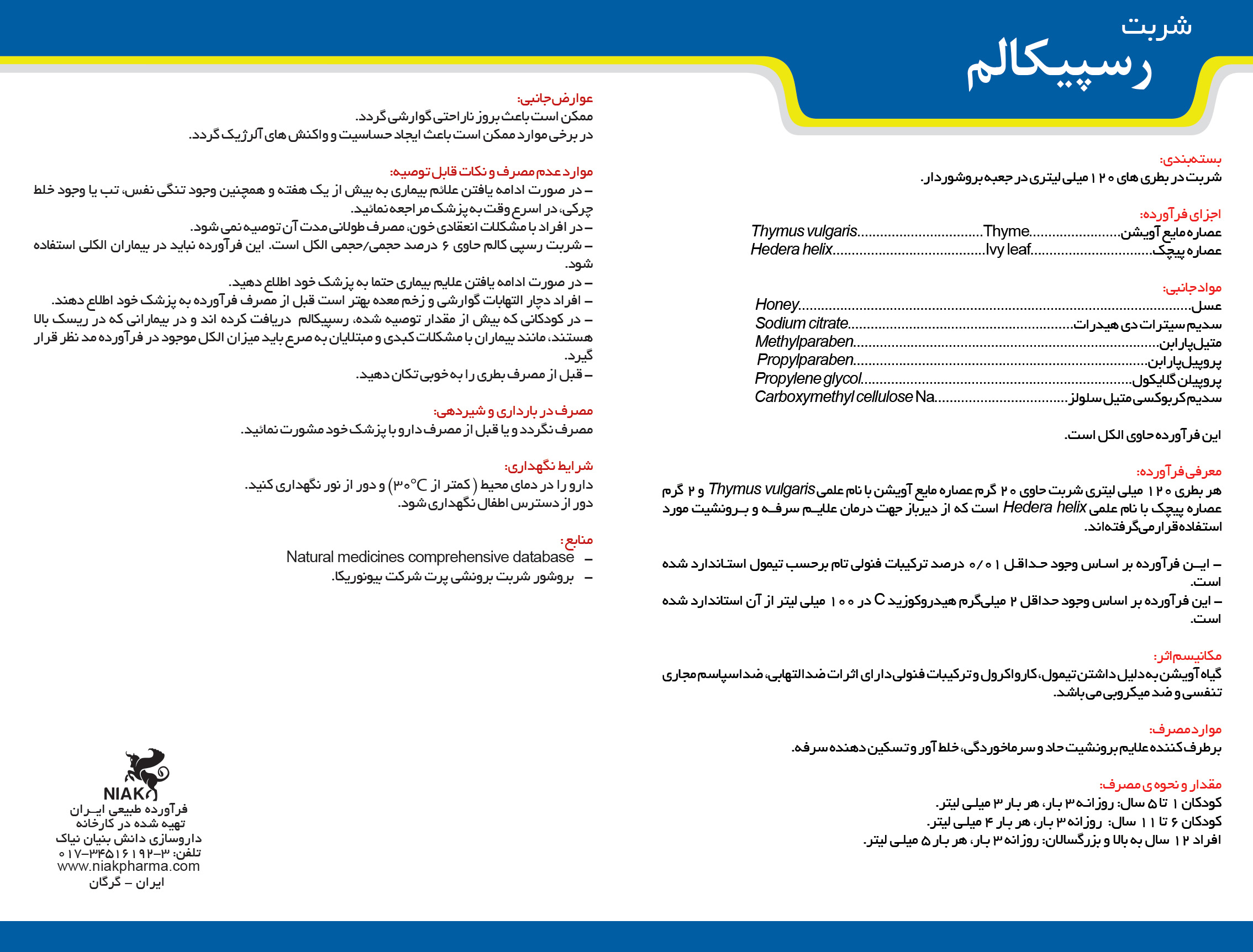 شربت رسپیکالم نیاک (Niak Respicalm)