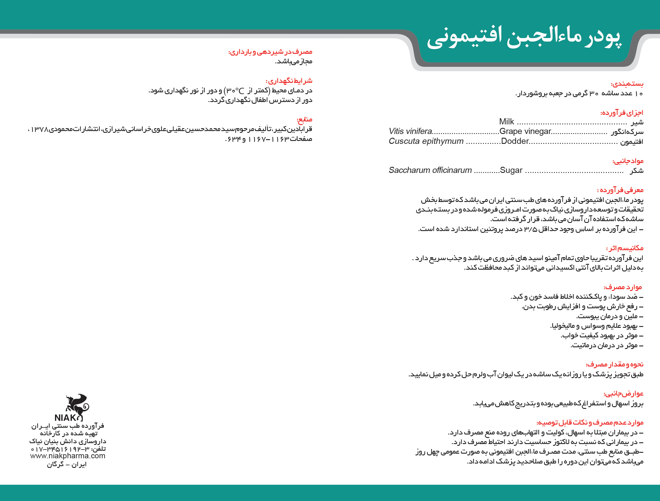 موارد مصرف پودر ماالجبن افتیمونی نیاک