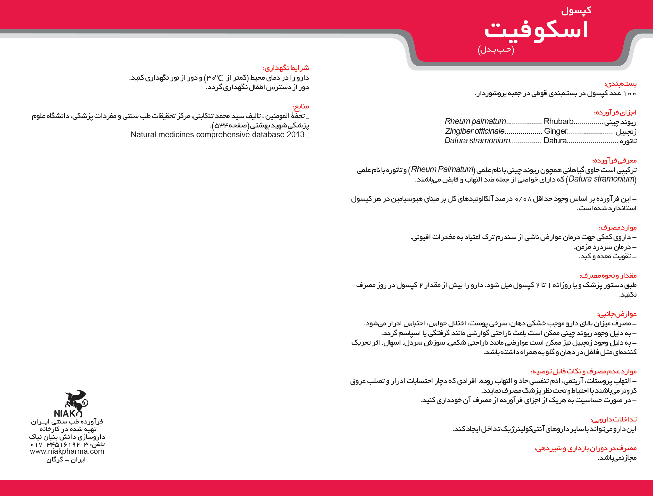 - نام فرآورده: کپسول اسکوفیت ( Niak Scophyt Capsule )