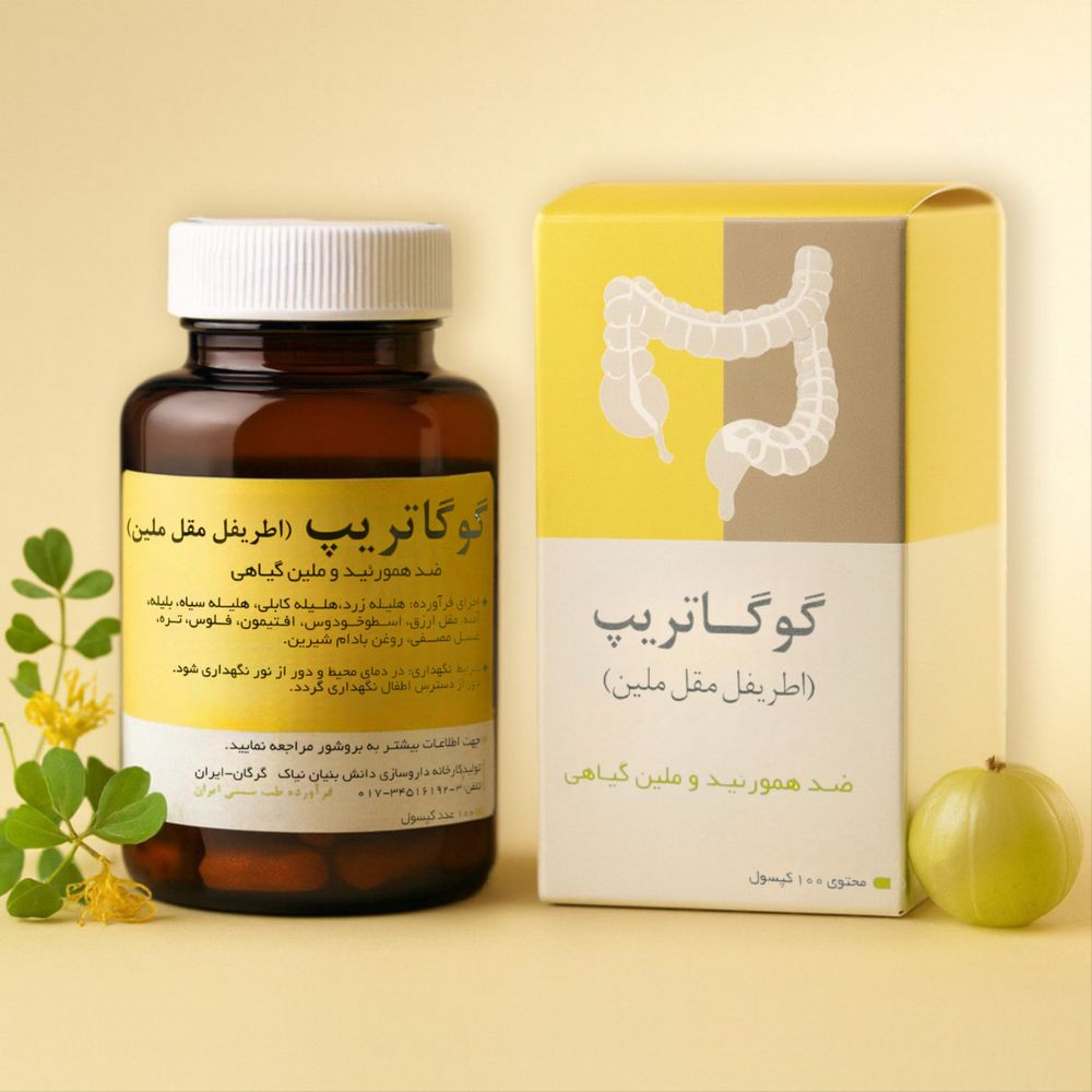گوگاتریپ نیاک بر پایهی یکی از ترکیبات سنتی پرکاربرد طب ایرانی، یعنی «اطریفل»، تهیه شده است. این فرآورده با ترکیب عصارههای گیاهان ملین، ضدالتهاب و مقوی اعصاب مانند مقل، آمله، بلیله، هلیله، لاوندر، افتیمون، و سنا فرموله شده است. در طب سنتی از این ترکیب برای درمان بواسیر، شقاق، درد مفاصل، یبوست مزمن، و بیماریهای صفراوی و سودایی استفاده میشده است. در پژوهشهای نوین، ترکیبات فعال این گیاهان به عنوان ضد التهاب طبیعی (anti-inflammatory)، تنظیمکننده چربی خون، و ملین ایمن شناخته شدهاند.