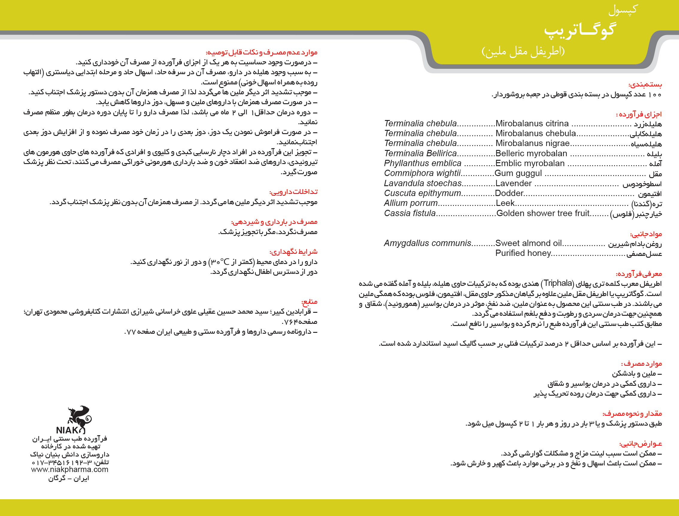 - نام فرآورده: کپسول گوگاتریپ (Guggatrip Capsule)