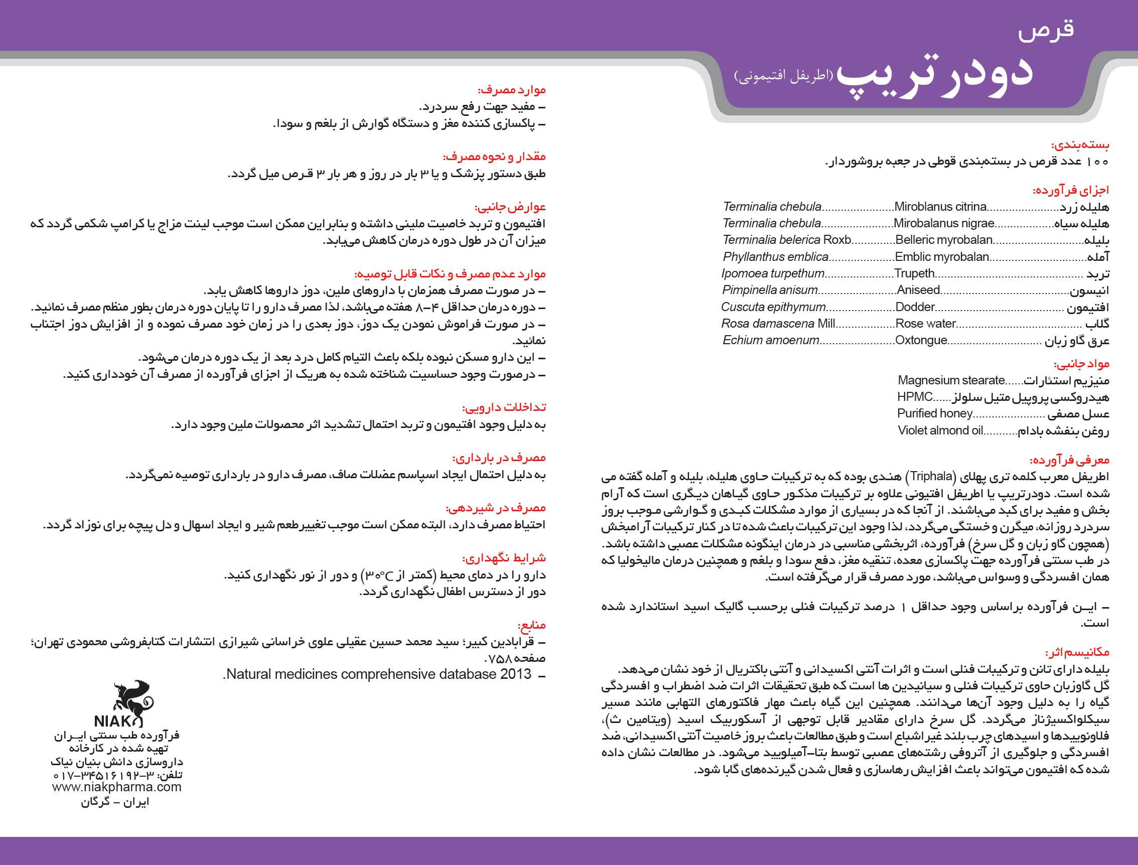 - نام فرآورده: قرص دودرتریپ (Dodder Tablet)